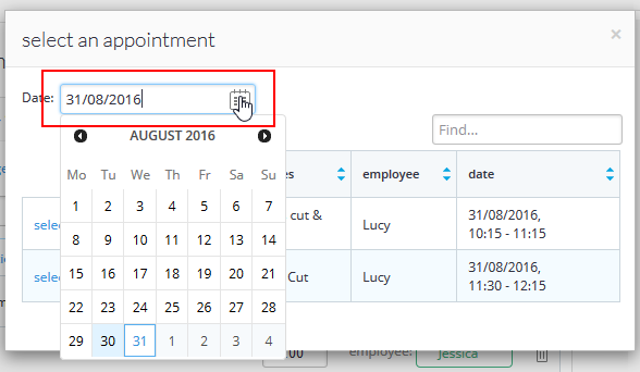 - Click the select option next to the appointment you want to add: