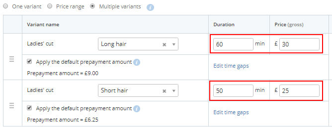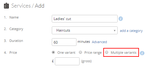 Service variants available in Versum make it possible to distinguish between different treatments that vary in duration, price or other characteristics. An example of the use of variants is a service for which different duration times can be booked, such as "classic massage - 45 minutes", "classic massage - 60 minutes", etc. > More on variants