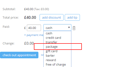 To pay for an appointment with a package: