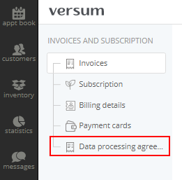 The contract for personal data processing may be accepted after ordering the Versum system.