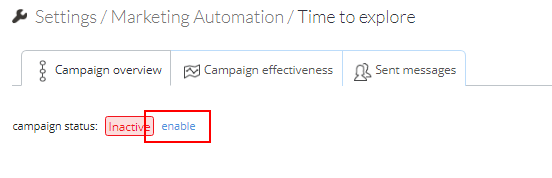- Having made sure the content is appropriate, change the campaign status to active, by clicking enable: