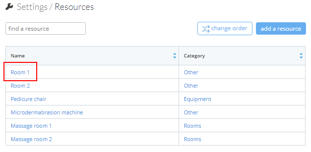 - In the resources table, click the name of the resource which you want to assign a service to: