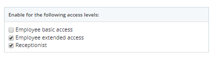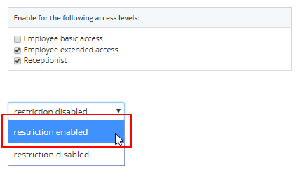 - Define which access levels the restriction should apply to. In the example below, the restriction applies to employees with extended access and receptionists, while employees with basic access are able to log in without any limitations: