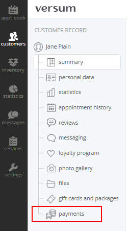 - In the menu on the left, select payments: