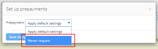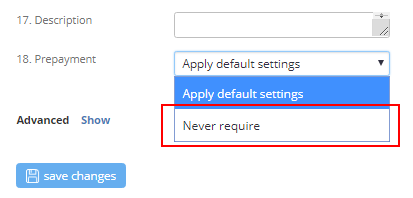 - Click the drop-down menu in point 19. Prepayment and select the Never require option: