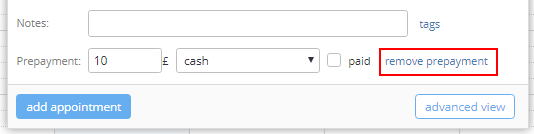 Tip: If you decide that a prepayment is not necessary for a given appointment, you can remove it from the new appointment window: