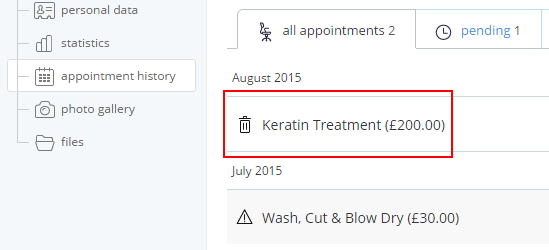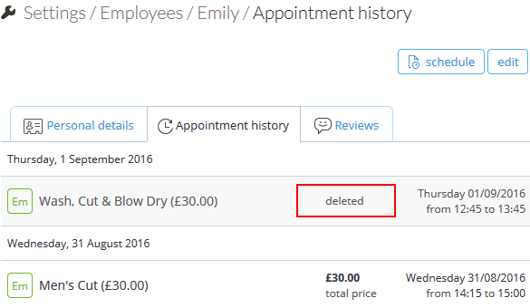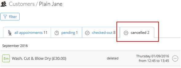 Tip: You can view all of the customer's deleted appointments under the cancelled tab:
