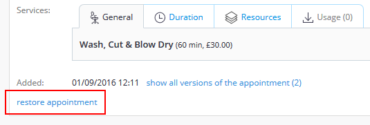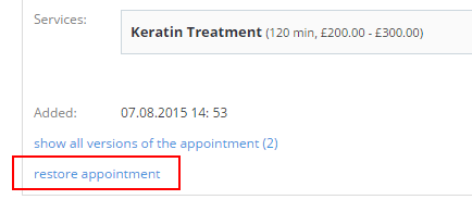- Once you've expanded the appointment details by clicking the appointment on the list, click the restore appointment link: