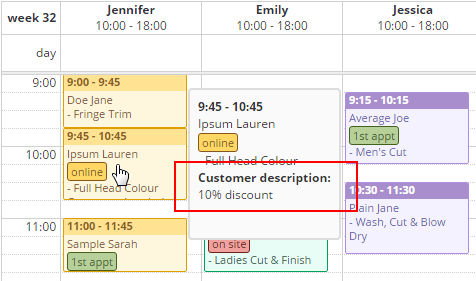 The description will be shown with each of the customer's appointments in the appointment book, allowing staff members to easily access the required details.
