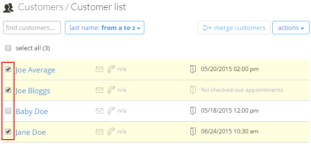 - Select customers you'd like to assign to a group (you can also use theĀ select allĀ option):