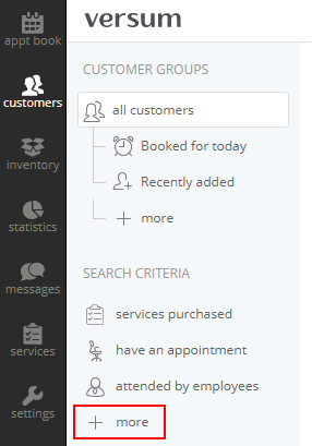 - Versum will display customers who don't have any appointments in the selected period