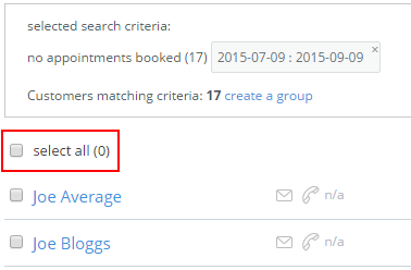 In order to quickly find customers who stopped using your services, you can use the no appointments booked search criterion (more on search criteria).