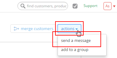 - Click the actions button in the right upper corner and select send a message: