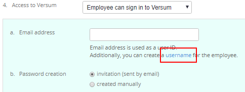 Make sure access to Versum in point 4 has been set to Employee can sign in to Versum