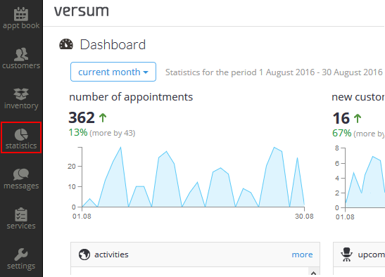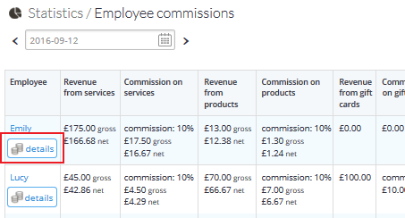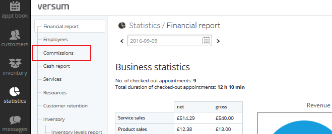 Based on defined commission rates, Versum automatically calculates commissions for each employee and presents them in the commissions report.