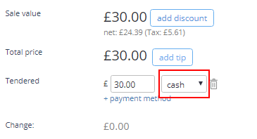 - Select the payment method from the drop-down menu next to the amount tendered: