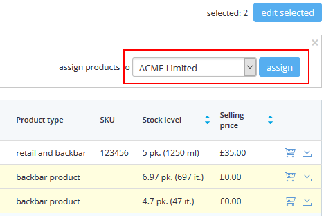 - Select the manufacturer you'd like to assign the products to and click assign: