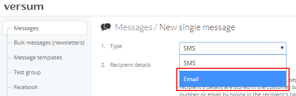 - Click the drop-down menu next to 1. Type and select Email. The email editor will be displayed: