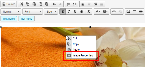 - If you need to edit the image after pasting it to the message, right-click the image and select Image Properties: