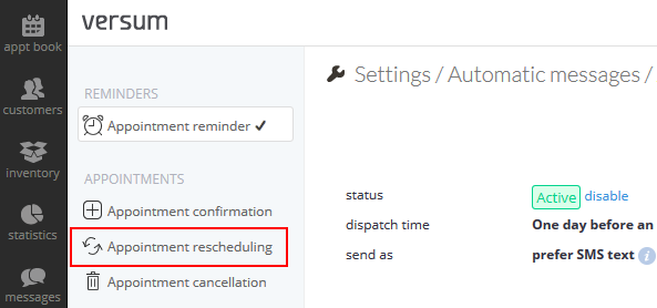 - Click Appointment rescheduling in the menu on the left:
